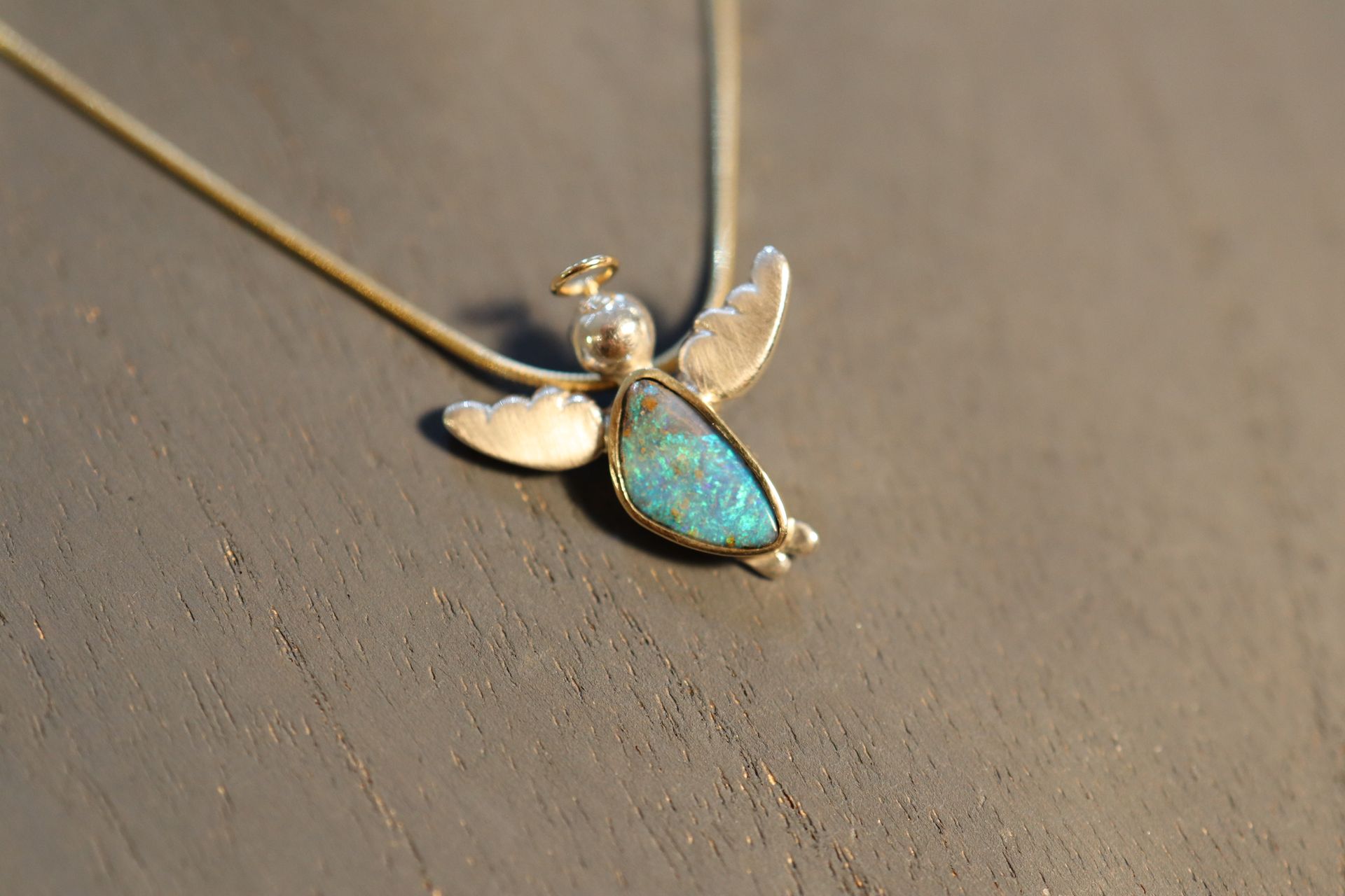 Silber 925/- mit Gelbgold 750/- und Boulderopal
